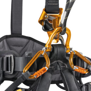 With an integrated CROLL L ventral rope clamp, the ASTRO BOD FAST harness is designed for greater efficiency and comfort during rope ascents. The gated ventral attachment point allows optimal integration of equipment (such as rope clamp, or seat). The wide, semi-rigid waistbelt and leg loops provide excellent support. They are contoured and lined with breathable foam padding for comfort when suspended. The DOUBLEBACK self-locking buckles at the rear of the harness, between the waistbelt and the leg loops, allow for a shorter adjustment when the dorsal attachment point is used. The harness also makes it easier to carry and organize work tools, with multiple gear loops and slots for attaching CARITOOL tool holders and TOOLBAG tool pouches. It has a fall indicator on the dorsal attachment point and is certified to North American and European standards. ASTRO BOD FAST (international version) features leg loops with FAST buckles.